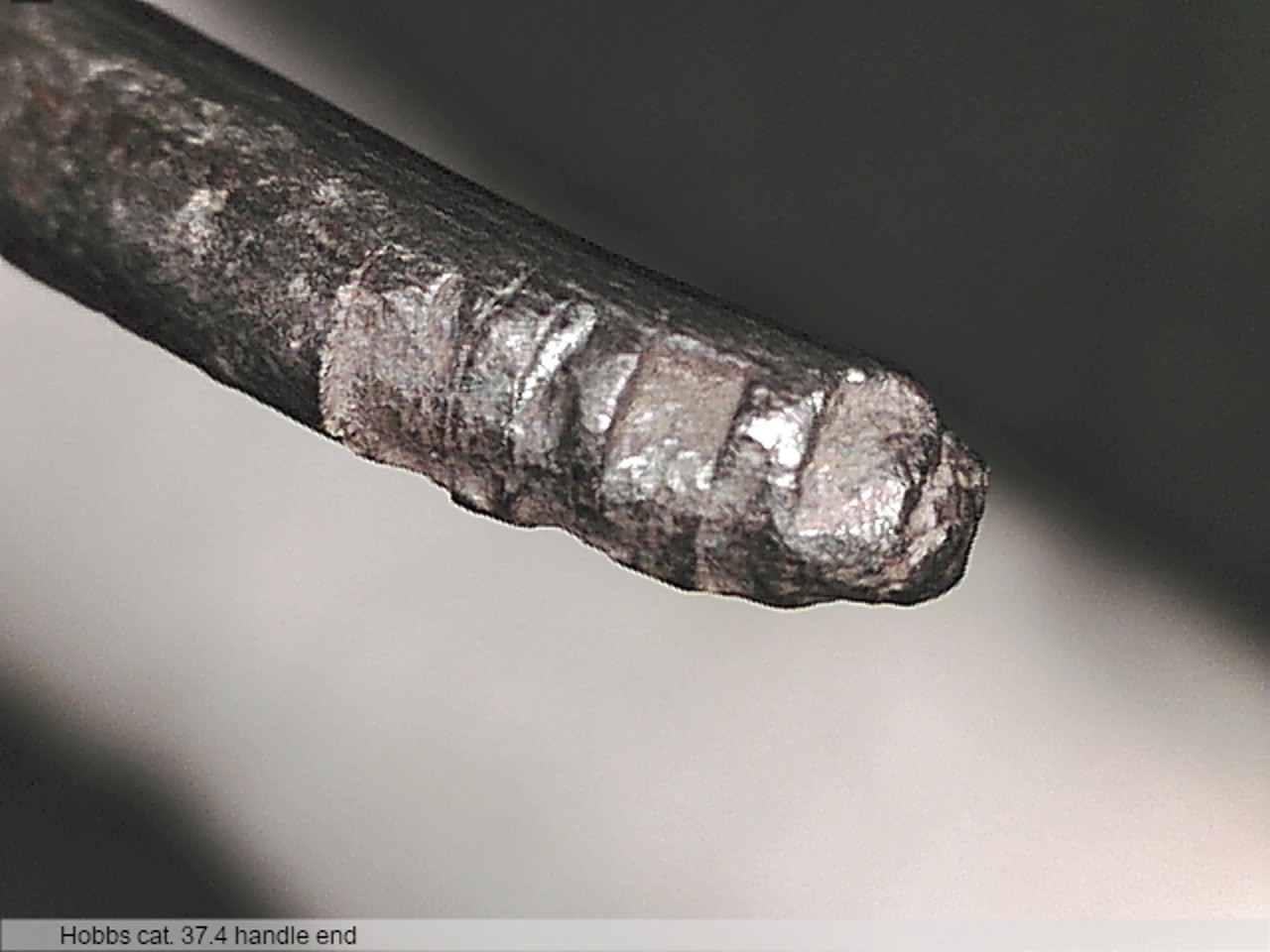 It can be difficult to identify hacksilver, especially if working from photographs or drawings, because objects buried in the ground are often damaged by ploughing as well. In our study at Ipswich museum, aided by a microscope camera, we were able to confirm that some of the Burgate fragments have deliberate cuts. It means that when the objects were buried, they were only valued for their weight in silver, and their previous function, as fine dining equipment, was obsolete. The pictures above and below show a quarter of a spoon bowl that has some neatly sheared edges (above), and a spoon handle fragment with some intriguing cut marks across it, either to remove small strips of silver, or as preliminary cuts made before removing the end of handle.