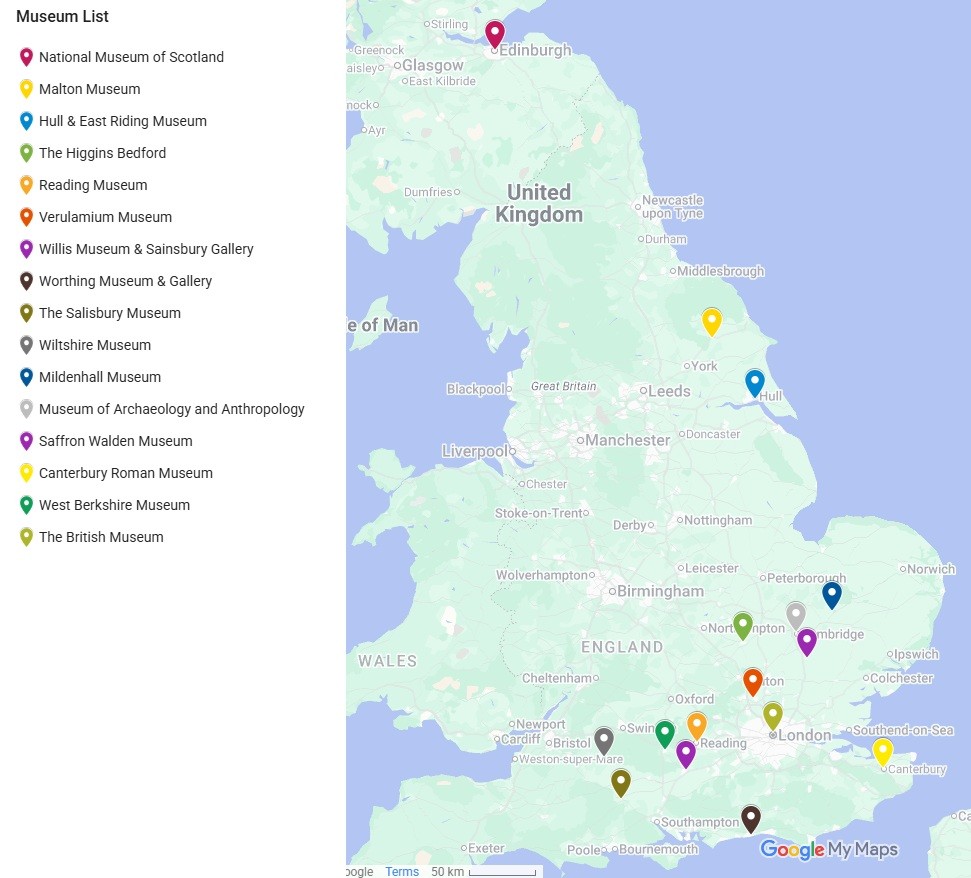 The British Museum has many late Roman hoards in its collection and many are currently on display in the Roman Britain Gallery (Room 49) including the Hoxne, Mildenhall and Thetford hoards. In a nearby gallery (Room 41), you can also see some of the coins and artefacts from the Balinrees (Coleraine) hoard discovered in Northern Ireland. From the 27th February – 27th May, you can also see a temporary display case about our project in Gallery 68 of the museum (see here). To plan a visit, see the website: https://www.britishmuseum.org/