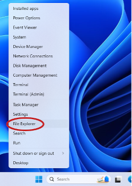 - Right-click the Windows start icon and select “File Explorer”