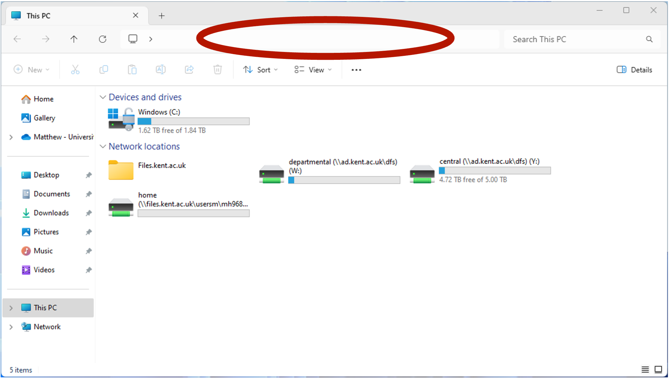 2. In the new File Explorer window, click on the blank white bar at the top of the window