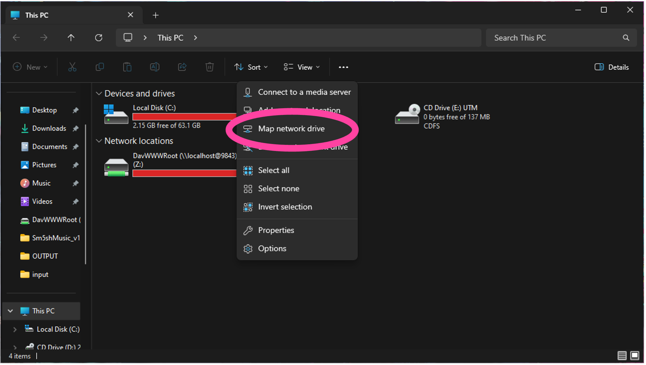 - Click the three dots in the menu bar just above the (C:) drive, then press “Map network drive”.