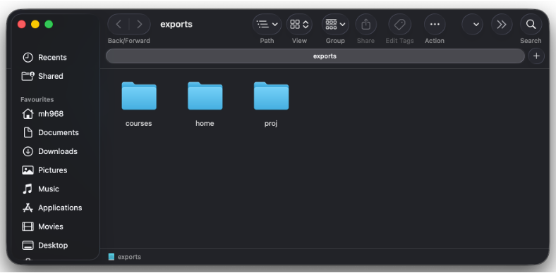 - You should see three folders titled “courses”, “home”, and “proj” as shown below.