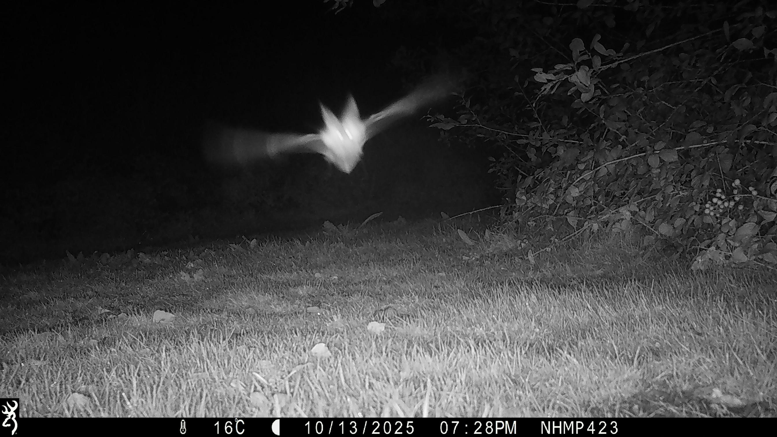 (Image of a bat flying away from the camera trap)