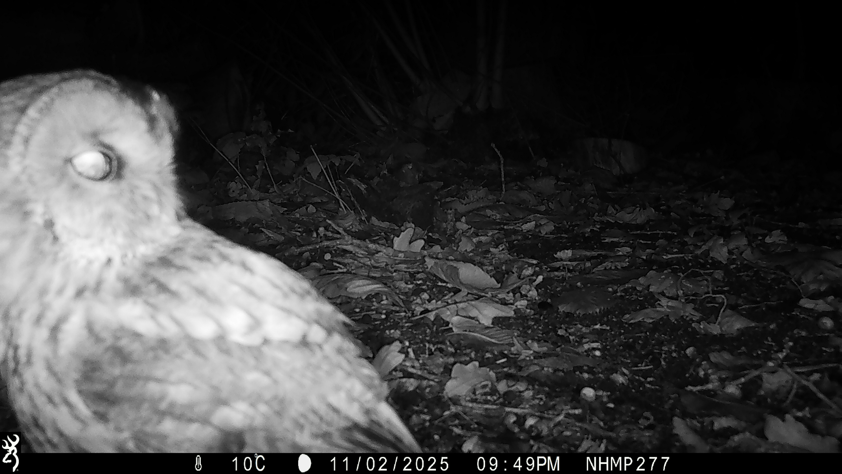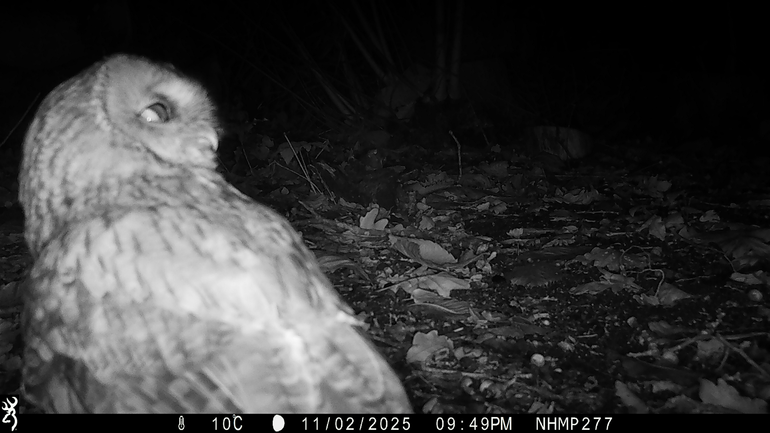 (Side profile camera trap image of a Tawny Owl)