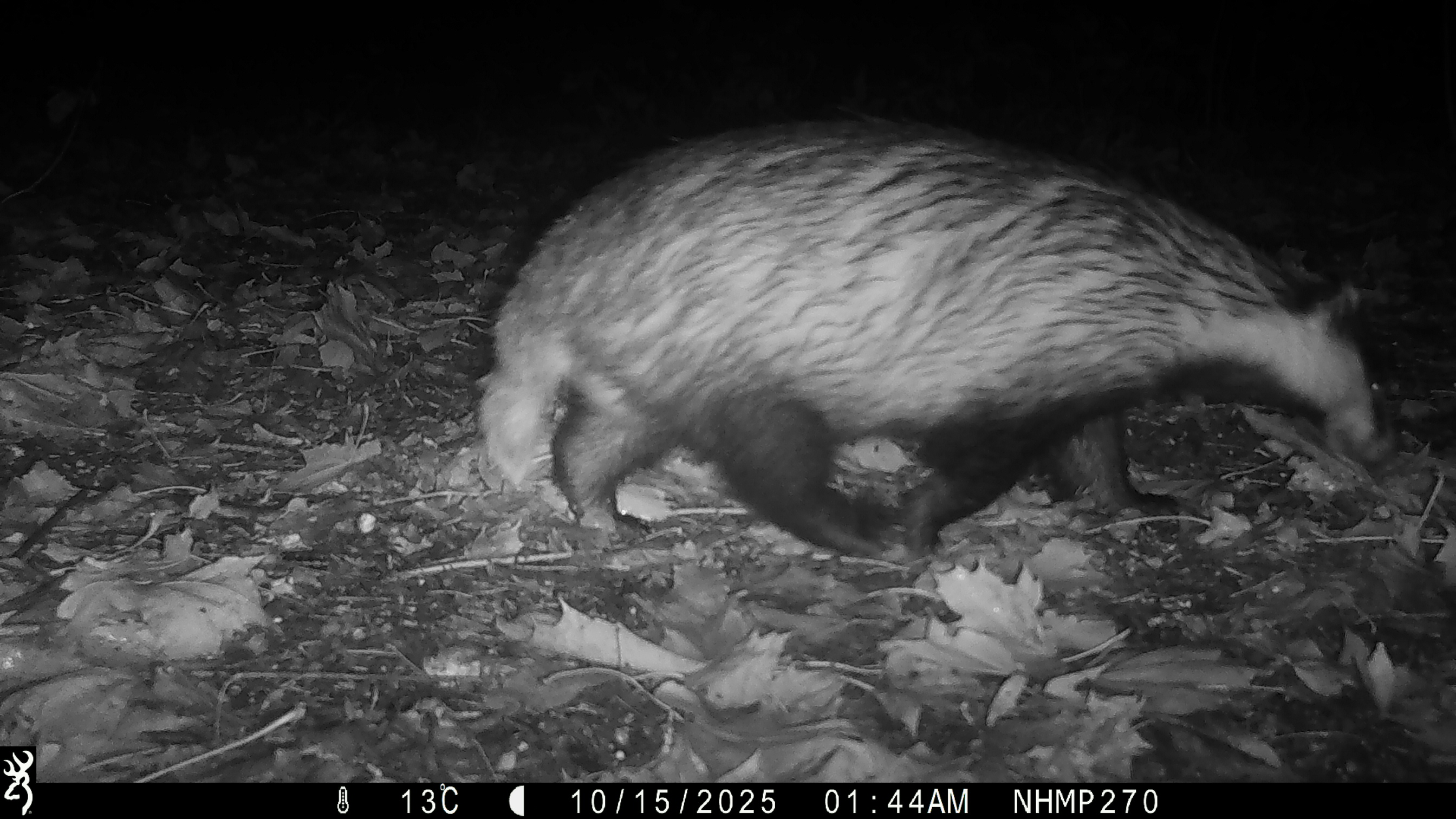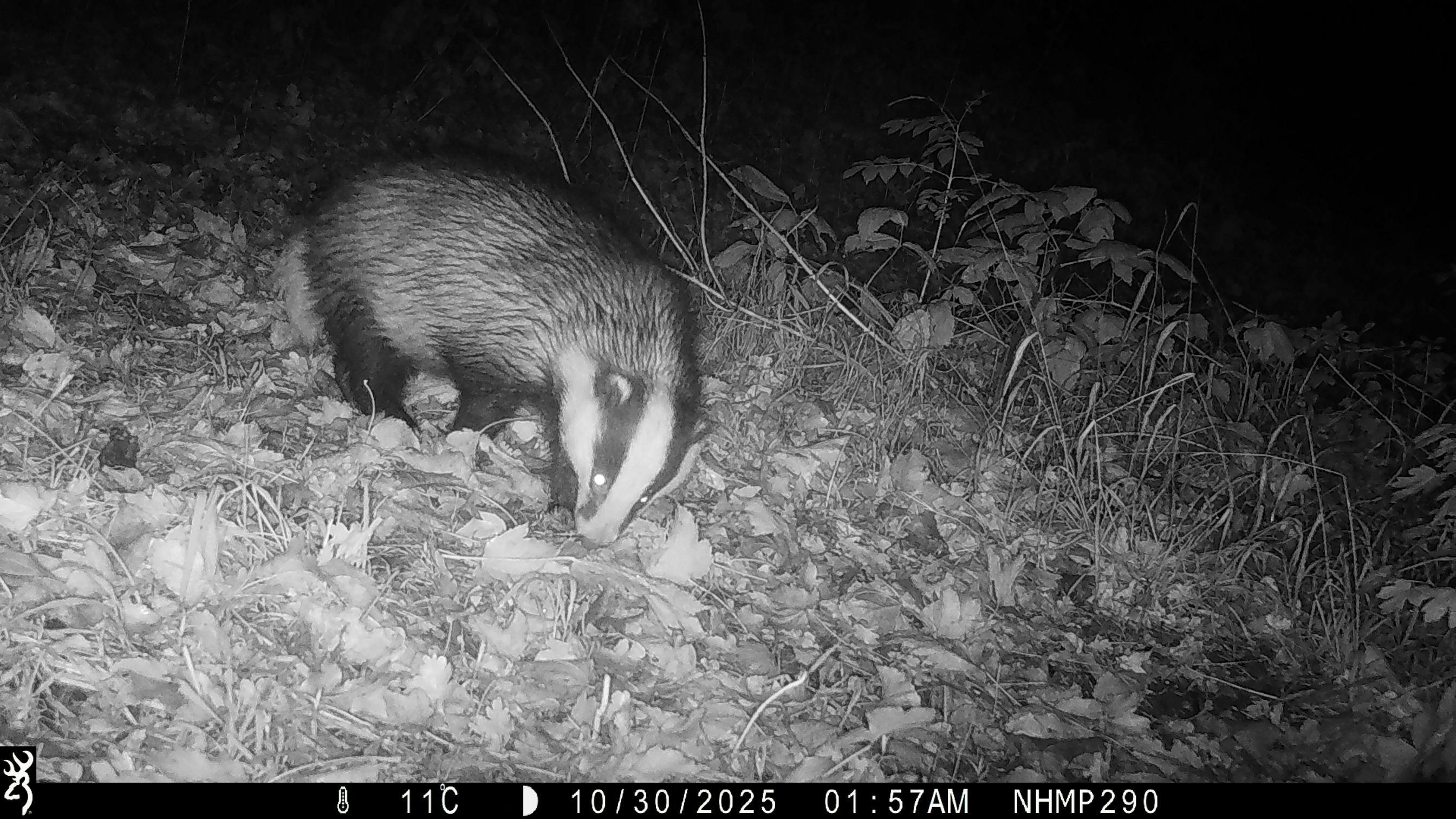 (Image of a badger walking away from one of the camera traps)